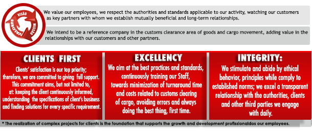 The experience in Customs Clearing of goods as well as in other areas of Supply Chain Management (Logistics and Procurement), allow us understand the clients’ real needs, in this way enabling the design of better support strategies to its businesses, concerning the movement and clearing of goods.